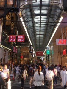Vandaag moet ik veel reizen. Ik reis weer terug naar Kyoto, want vanavond staat er een dinner met twee van onze business partners op het programma. Maar voor het zo ver is moet ik eerst nog een paar uur reizen. Ik reis via Nagoya naar Kyoto. De eerste trein is een express train, de tweede trein is een Shinkansen. Kyoto voelt al meer vertrouwd – ik ben hier immers al eerder geweest. Ik verblijf weer in het Shinmonzen Ethnography hotel, hetzelfde hotel waar ik de eerste nacht van mijn reis heb geslapen. ‘’Je bent hier al eerder geweest, toch? Welkom terug!’’ zegt de Engelssprekende receptionist van het hotel. Het is geen straf om hier weer te zijn, want ik vind dit toch wel het mooiste hotel tot dusver. Vanmiddag wordt er veel regen verwacht. Ik breng mijn middag door bij de Shijodori, de winkelstraten. Ik koop Koreaanse skincare en drink een Starbucks – inderdaad, totaal niet Japans, maar het avondeten schijnt wel typisch Japans te zijn: rauwe kip. Ja, dat leest u goed: RAUWE kip. Rauwe kip is een delicatesse in Japan en hoewel ik op het internet alleen maar positieve recensies tegenkom – de Japanners weten echt wel wat ze aan het doen zijn – heeft het toch niet mijn voorkeur. Ik ben dan ook blij als we die avond in een yakitori restaurant zitten met een zeer uitgebreide menukaart. Ik heb een afspraak met Chiyo en Ken van Windows to Japan, die alle twee zeer goed Engels blijken te spreken. Ze zijn erg geinteresseerd in al mijn Japan avonturen en de avond vliegt voorbij. Na verscheidene soorten yakitori te hebben gegeten nemen we nog ijs na. Het ijs heeft een kaneelachtige smaak en smaakt geweldig, misschien nog wel beter dan de yakitori. Chiyo loopt met me mee tot aan mijn hotel en laat me onderweg zien bij het metrostation zien waar ik moet zijn voor mijn reis naar Osaka.