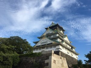 Vandaag is alweer mijn laatste dag in Japan, die ik in Osaka ga doorbrengen. De rit van Kyoto naar Osaka stelt niks voor met de rit van Takayama naar Kyoto van gisteren – ik ben een klein uurtje onderweg. Ken heeft me gisteren verteld dat Osaka de tweede stad van Japan is en het er erg levendig en ook een tikkeltje chaotisch is. Het is ook een goede stad voor lekker eten en shoppen. Dat spreekt me wel aan. Ik heb dan ook geluk dat mijn hotel Villa Fontaine Shinsaibashi midden in het shoppingdistrict van Shinsaibashi ligt. Als ik bij de metro met de roltrap omhoog kom is het eerste dat me opvalt dat het hier inderdaad écht groot en druk is. Het metrostation alleen al heeft een shopping center onder de grond waar ik me prima kan vermaken. Ik laat mijn koffer achter in het hotel en ga op verkenning. Eerst is het tijd voor een ijskoffie. Ik heb vandaag een paar dingen op het programma die ik nog wil doen: natuurlijk de winkelstraten, maar ook het kasteel van Osaka en de Dotonbori. Japanse souvenirs heb ik al wel, maar het blijft toch leuk om rond te slenteren door de winkelstraten in Osaka. Hier vind je ook zaken als H&M en Uniqlo. Wat me ook opvalt is dat er hier meer buitenlanders zijn dan in de andere steden die ik tot nu toe bezocht heb. Ik kom veel meer Koreanen en Chinezen tegen, en ook meer Europeanen. Er schijnt ook nog een Koreatown te zijn, maar daar kom ik helaas niet meer aan toe. Ik ga een praatje aan met een paar Koreanen in een Koreaanse winkel. Dat vinden ze leuk, en dus krijg ik een paar goodies.