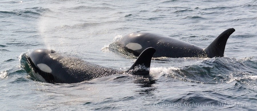 Weer aan land rijden we voor de 3e keer over de bergpas naar de andere kant van het schiereiland voor de volgende cruise. Deze keer gaan we op zoek naar walvissen. Vooraf krijgen we te horen dat er weinig kans is om deze keer walvissen te zien, maar in de ochtend zijn er wel potvissen gezien dus daar gaan we naar op zoek. De potvissen zijn ondertussen vertrokken maar tot onze verrassing stuiten we op een orka familie. Vader, moeder, tiener en baby. Wat is dit geweldig om te zien.